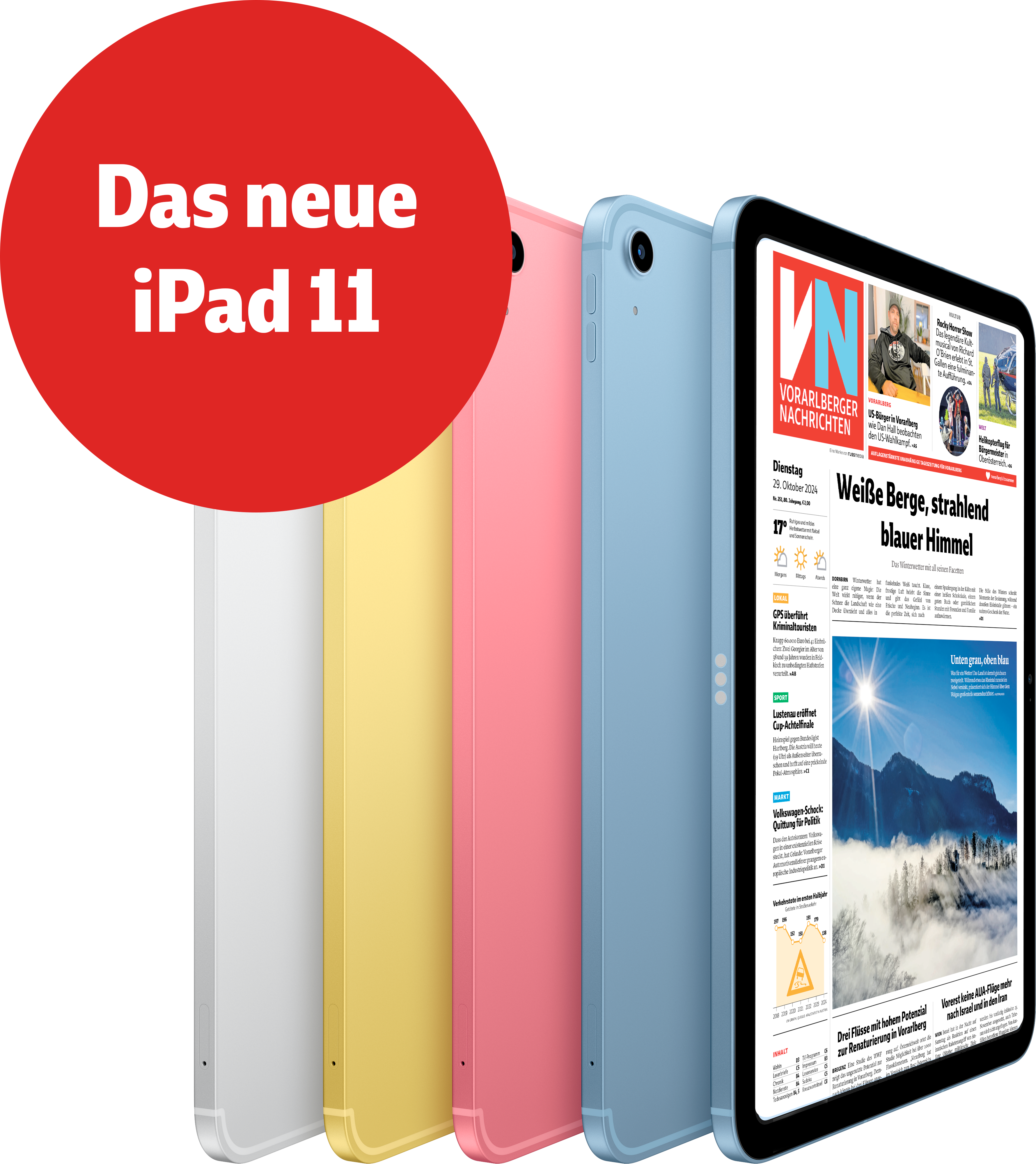 Mit diesem Angebot erhalten Sie unbegrenzten Zugang zu VN.at inkl. dem täglichen ePaper und allen V+ Artikeln auf VOL.AT und bekommen zudem Ihr neues Wunsch-Tablet von Apple. Nach nur 24 Monaten Vertragslaufzeit gehört das Gerät Ihnen.